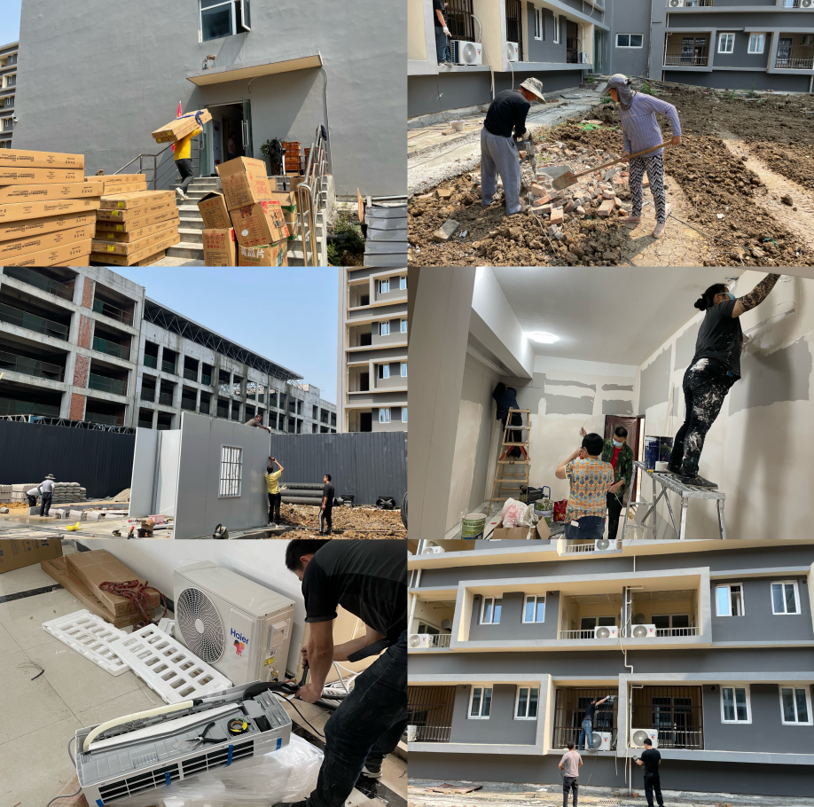 为全面落实区委疫情防控指挥部关于改造储备一批标准隔离场所的工作要求,PA真人集团官网集团须在较短时间内完成对皓华光电建筑面积8596.74㎡员工宿舍楼约180个房间的标准化改造。面对“时间紧、任务重”的难题,自4月5日接受任务后,PA真人集团官网集团连夜召开专题会,围绕项目现场实际情况、改造标准要求、任务分段分工、后勤实时保障等进行深入研究,于4月7日迅速入场,开工后合理规划工期,科学分段施工,将室外场平、围栏搭建与室内维修改造、家具电器询价安装同步进行。与此同时,该应急项目成立以集团党员干部带头的“党员突击队”,积极带领业务骨干驻扎项目现场,坚持以安全生产为前提,紧盯项目建设质量、狠抓项目建设工期,“5+2”“白加黑”,以实际行动展现党员模范带头示范作用。截至发稿前,已完成该应急项目室外道路附属设施建设、室内维修改造和家具电器设备安装工程量各60%,预计本月15日按计划完工。