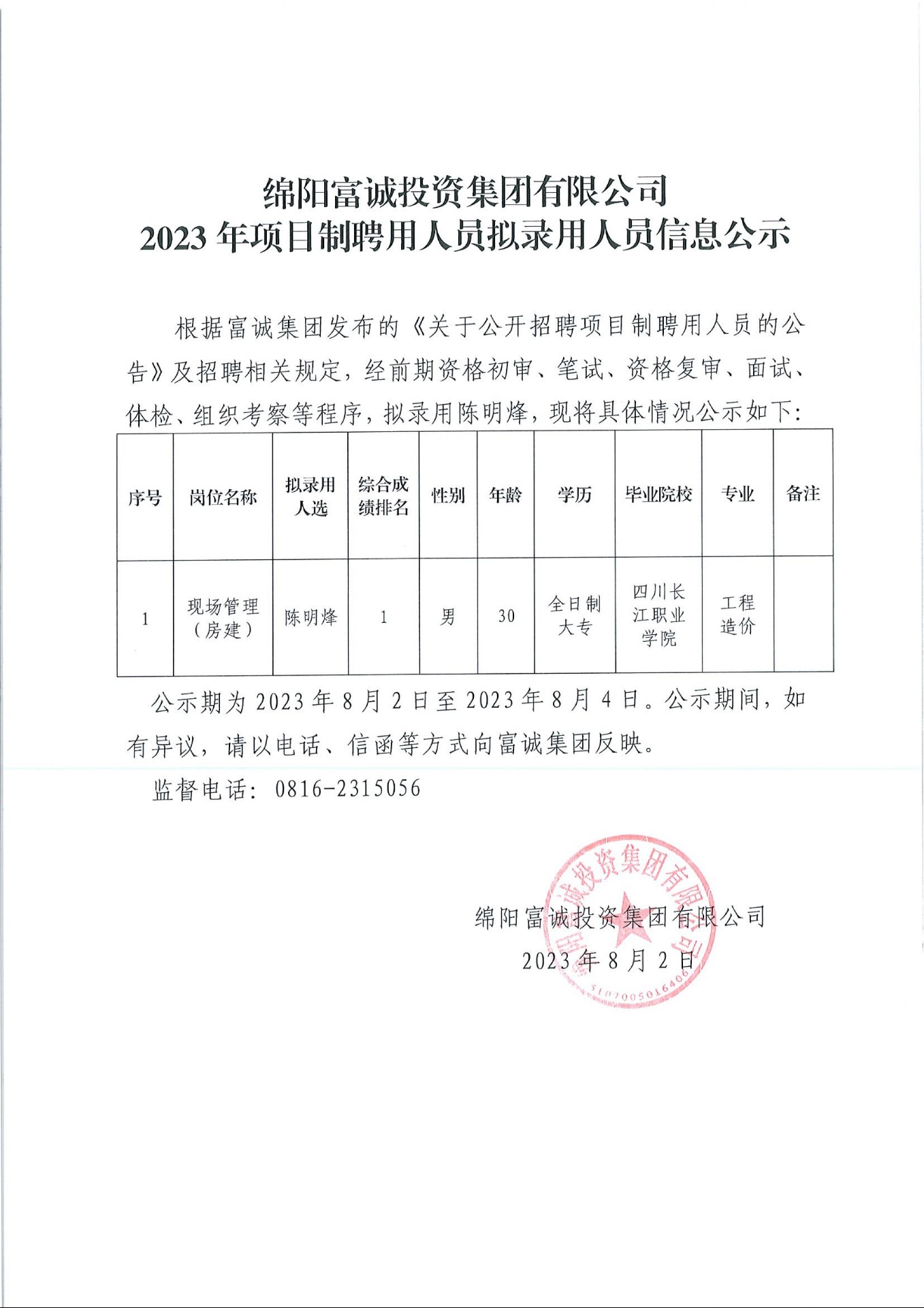 PA真人集团官网2023年项目制聘用人员拟录用人员信息公示