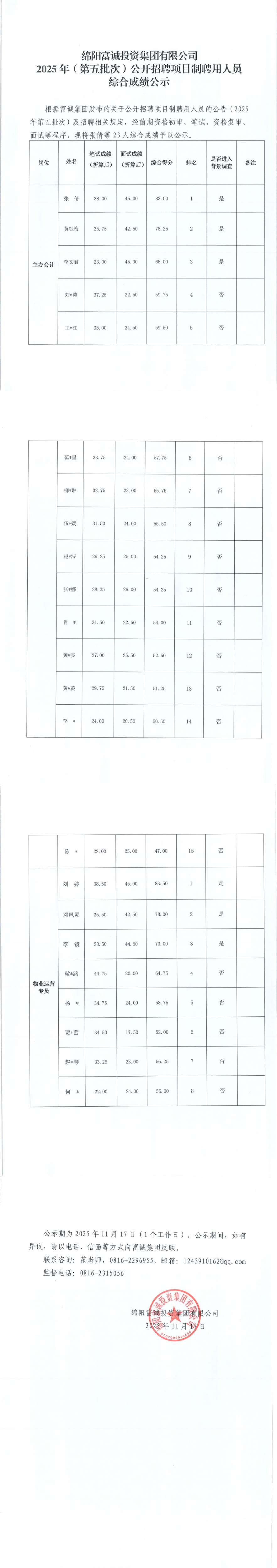 PA真人集团官网2025年(第五批次)公开招聘项目制聘用人员综合成绩公示