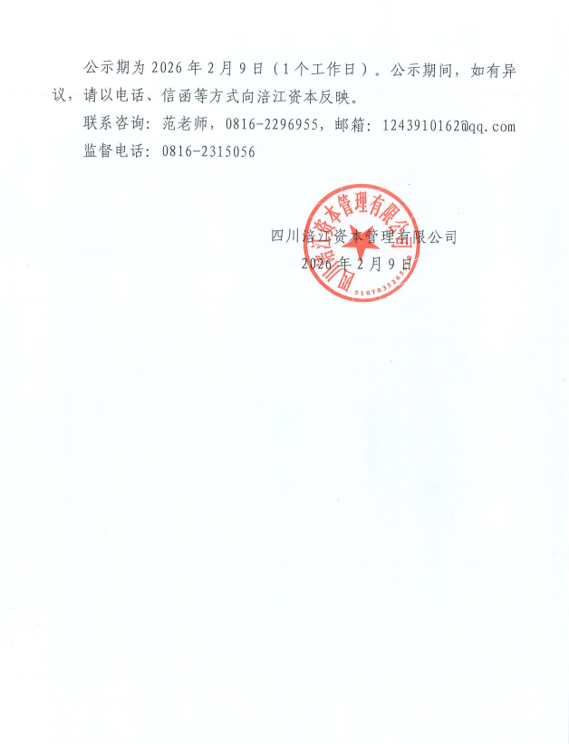 四川涪江资本管理有限公司公开招聘工作人员综合成绩公示