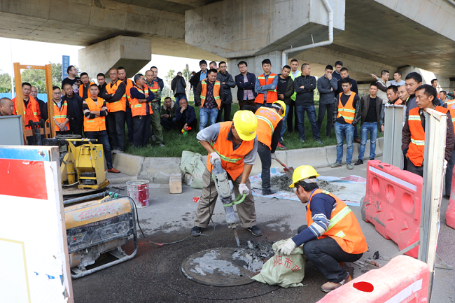 2017年11月7日下午,市市政设施维护中心组织在滨河路北段二环路桥下现场观摩学习了“五防井盖”更换安装,沥青灌缝施工技术及市政维护现场安全文明施工管理,PA真人集团官网公司项目管理部市政组主动对接维护中心,并安排所有现场巡查管理人员及各片区施工班组到现场学习。 在观摩学习现场,教学人员详细讲解了“五防井盖”的功能结构和沥青灌缝的工艺原理,并现场演示了场地围挡、水马安放、地面切割、井盖安装、建渣清理等步骤及沥青灌缝施工的扫缝、吹缝、灌缝等的施工工序,以及作业过程中的其他注意事项。学习结束后,市维护中心组织大家对学习内容进行了讨论交流,各单位均表示要以此次施工演示为标准,提升自己的施工工艺,加强现场的…… [更多]
