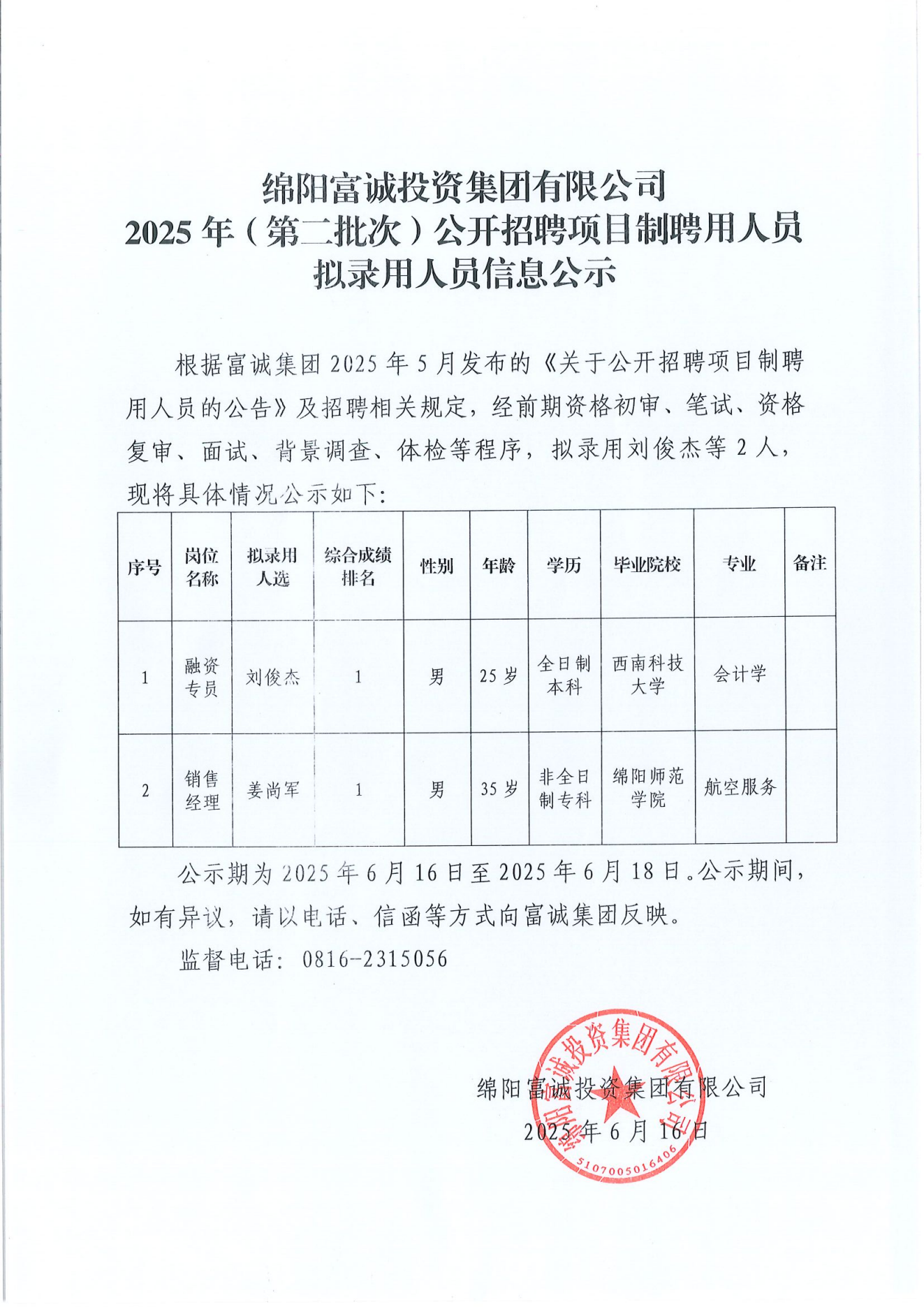 为加快推进公司建设与发展,提升市场化、专业化运营水平,经研究决定,面向社会公开招聘总经理1名。现将有关事项公告如下:一、公司简介四川涪江资本管理有限公司(以下简称“涪江资本”)成立于2024年11月15日,系涪城区区属国有企业PA真人集团官网(以下简称“PA真人集团官网集团”)与四川涪创发展集团有限公司共同成立的合资公司。公司注册资本金5亿元人民币,主要负责推进涪城区内基金投资整合,并参与后续基金投资项目具体工作。涪江资本秉持专业、稳健、创新的经营理念,深化与区内外企业的合作,不断拓宽投资视野,优化投资组合,努力成为推动区域经济高质量发展的新引擎。二、招聘原则坚持公开、平等、竞争、择优的原则。三、…… [更多]